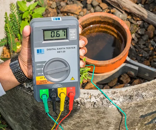 The DET 20 is a reliable 3½ digit LCD meter designed for accurate measurements of earth resistance, soil resistivity, and earth voltage. Thanks to its cutting-edge RSR technology, it delivers stable and precise readings, even when the battery starts to run low. Built tough for heavy-duty tasks and challenging environments, this instrument is your go-to for dependable performance.